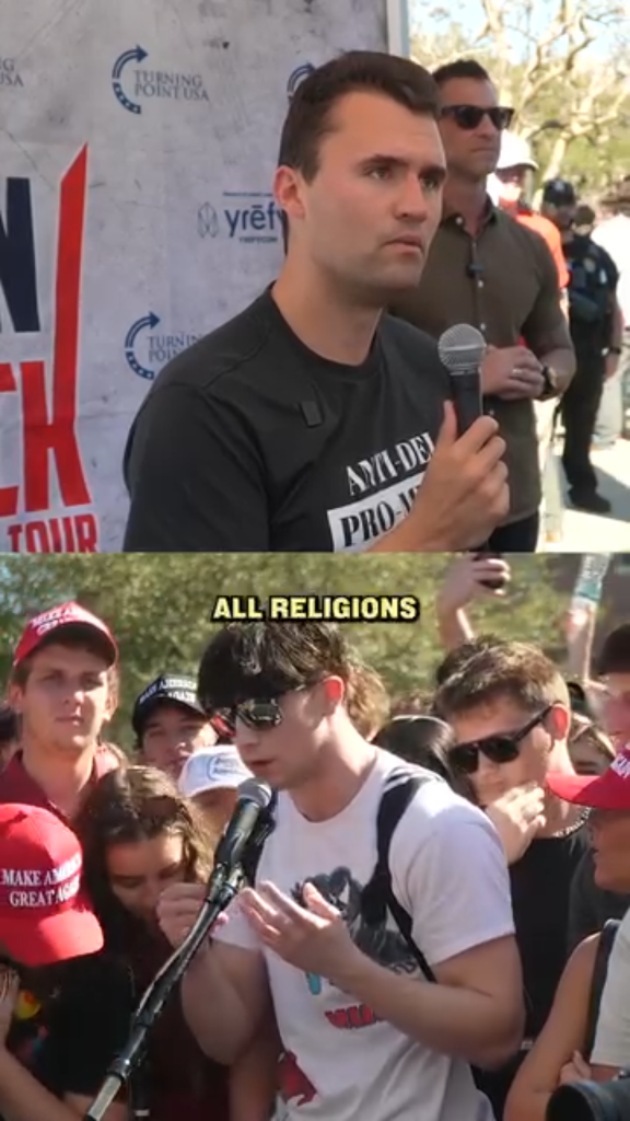 In a widely shared campus conversation, Charlie Kirk engaged with a student who claimed that religion was invented and that Christianity was not grounded in reality. The student argued that the Bible was merely a collection of stories and demanded proof. Charlie Kirk did not respond with hostility or emotion. Instead, he asked a simple question: