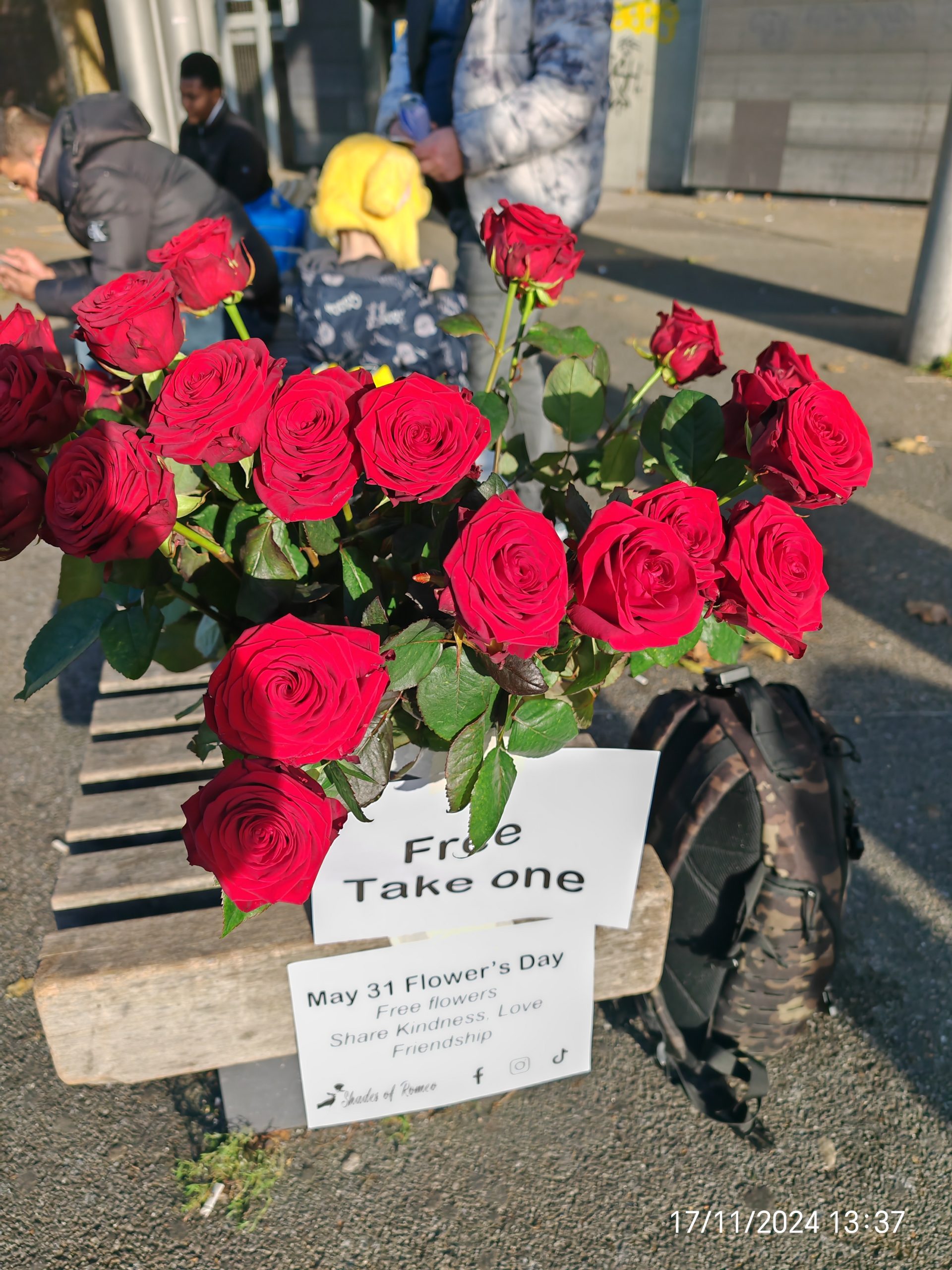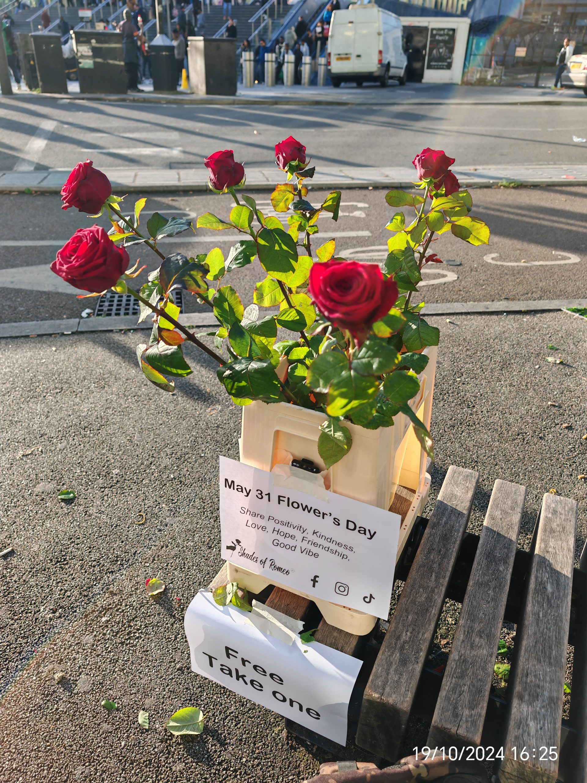The mission continues: more roses, more light, more awakening. I can’t do it alone. Become a Romeo – join with flowers and faith. Or support with just 1£ for a rose – every pound buys more to give freely and spread this message!