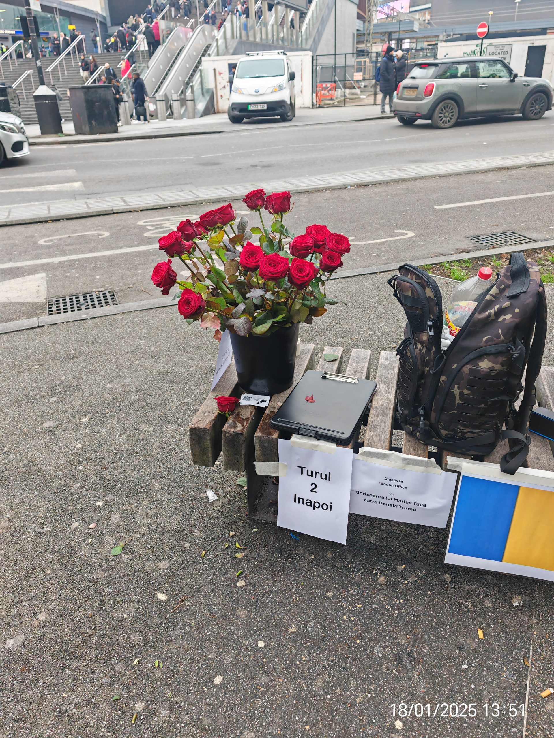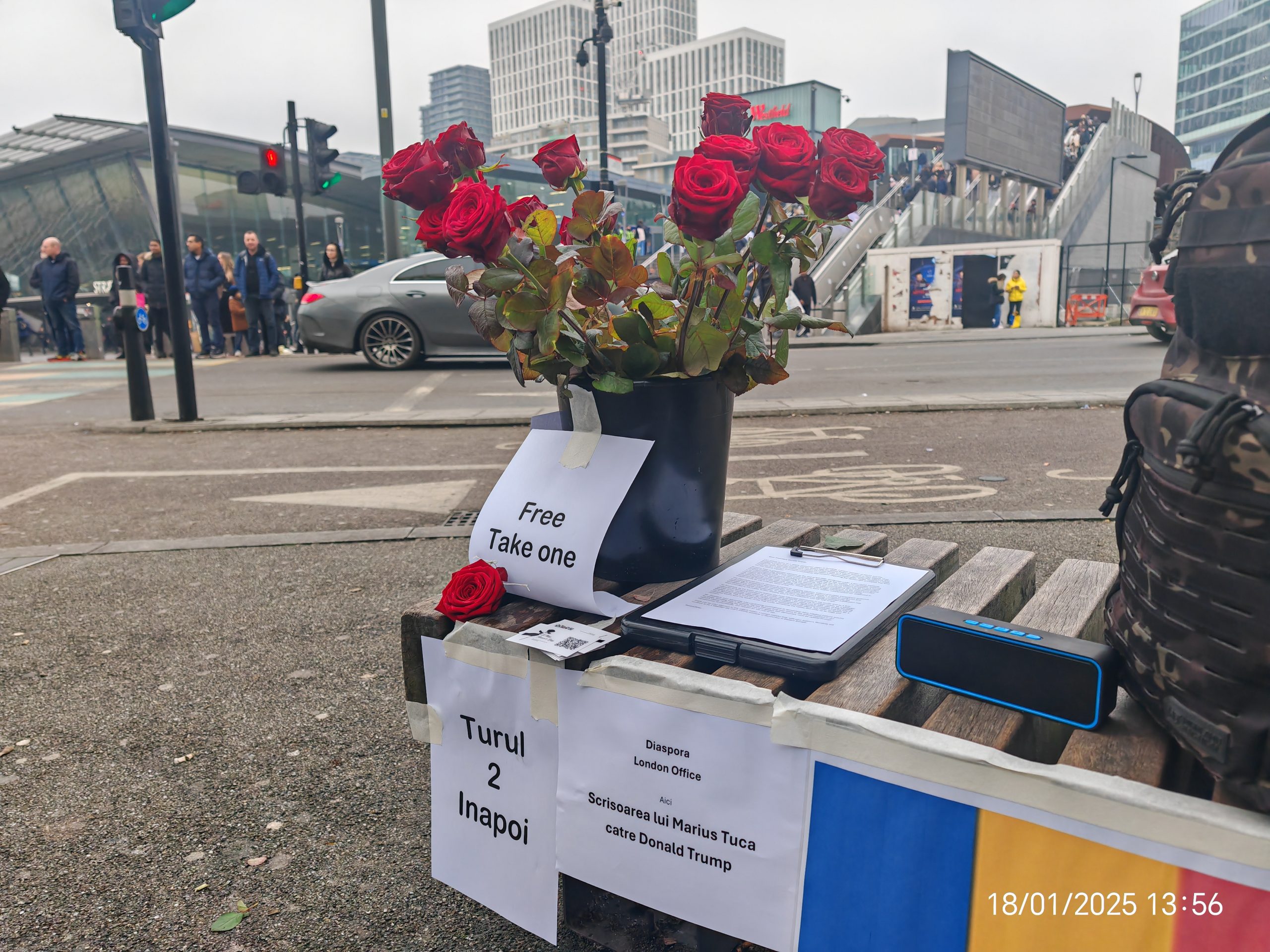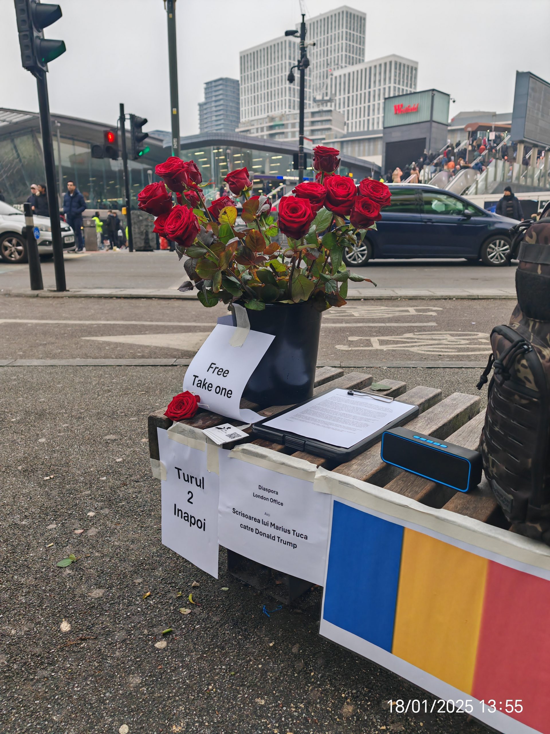 Add your photos below (embassy shots with tricolor + roses, Stratford streets, close-ups with messages if any). This ties strongly to Charlie Kirk’s emphasis on God/faith as foundation for freedom/democracy, while linking America-Romania and your protest motive.