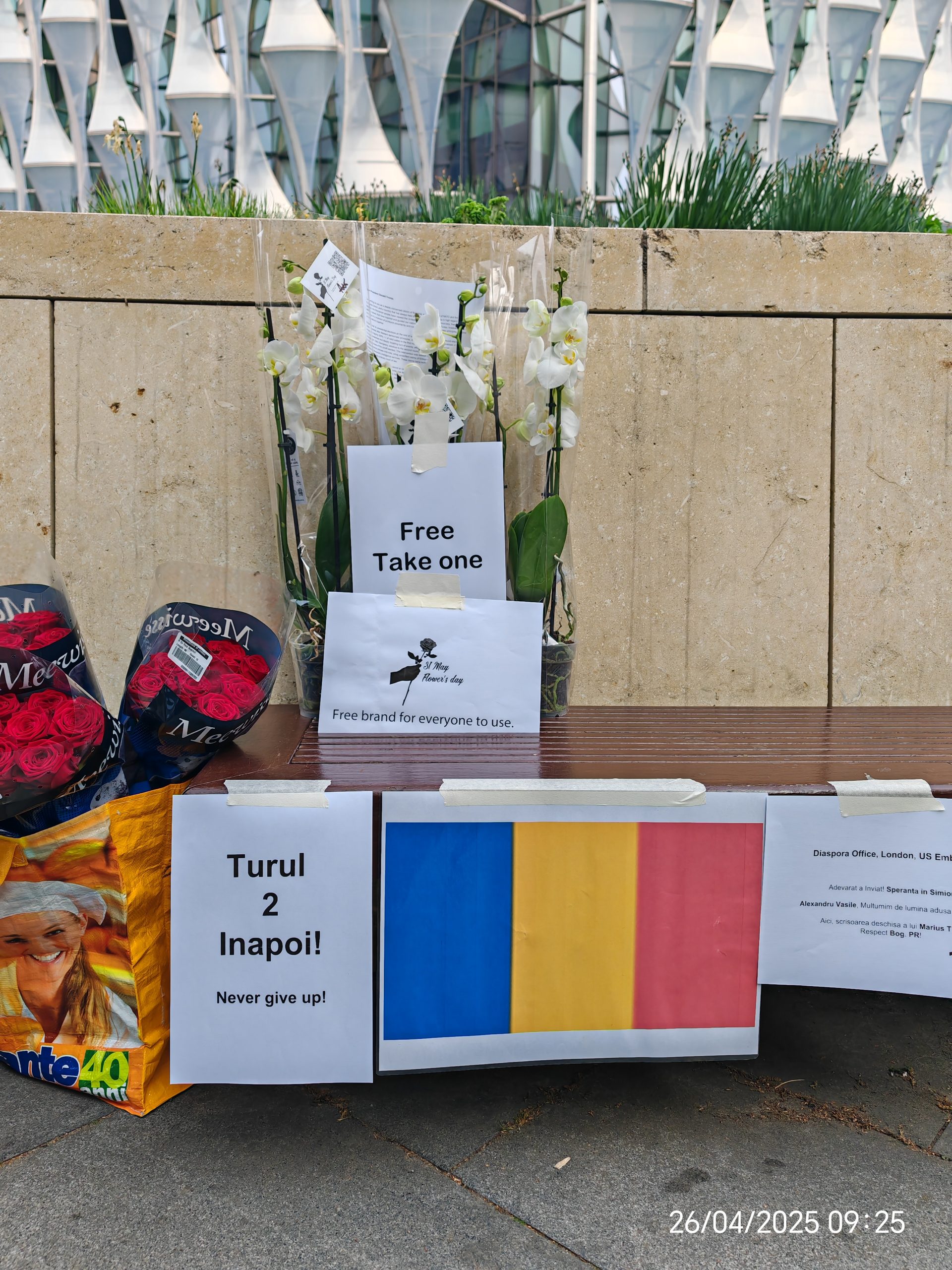 When Romania’s elections faced annulment and controversy (stealing the people’s voice and the freedom to vote), I felt called to act peacefully. I left roses at the embassy gates – carrying the tricolor flag specially placed so the world sees: I am Romanian, proud and unbowed. Democracy was born and defended in America; now Romania needs that same freedom for vote, protected from interference and overreach. Each rose whispered Charlie Kirk’s truth: “Freedom is from God, not from the government.” We are made in the Creator’s image – beings of love, light, and divine purpose. These flowers honor that, reminding us to respect democracy, love our Creator, and defend liberty wherever it’s threatened. 💫✊