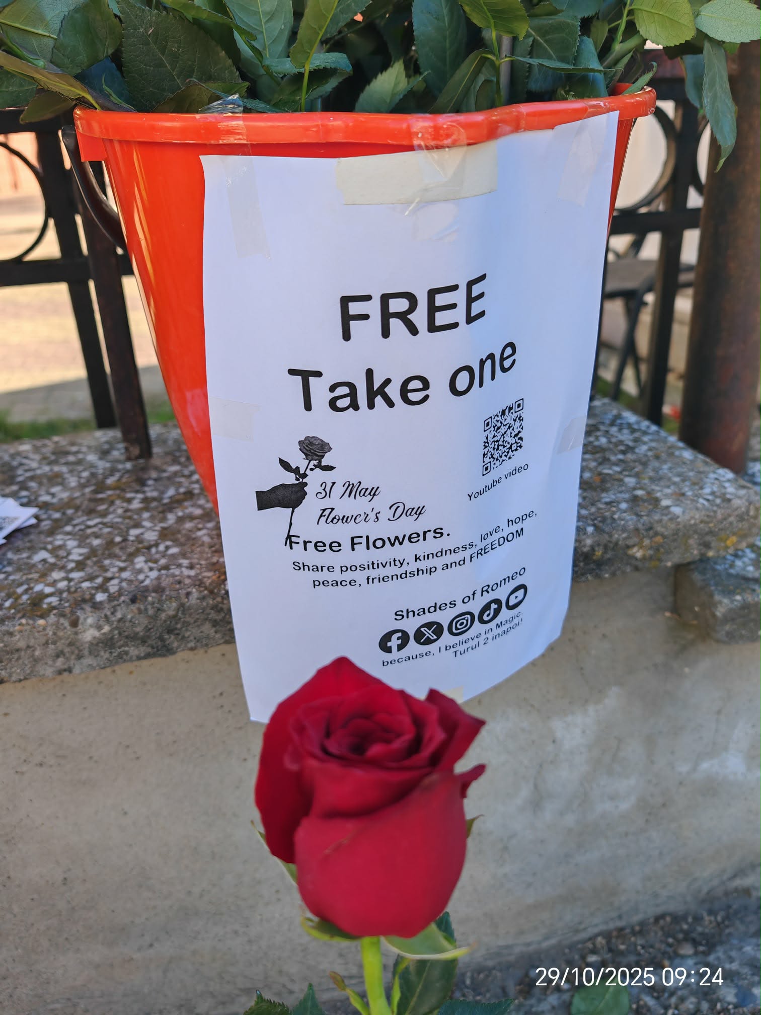 These photos represent real actions I have taken over time — flowers offered freely, without conditions, without expectations. They are moments of presence, not performances. Each image is a quiet confirmation that this initiative exists in the real world, not only as words or ideas.